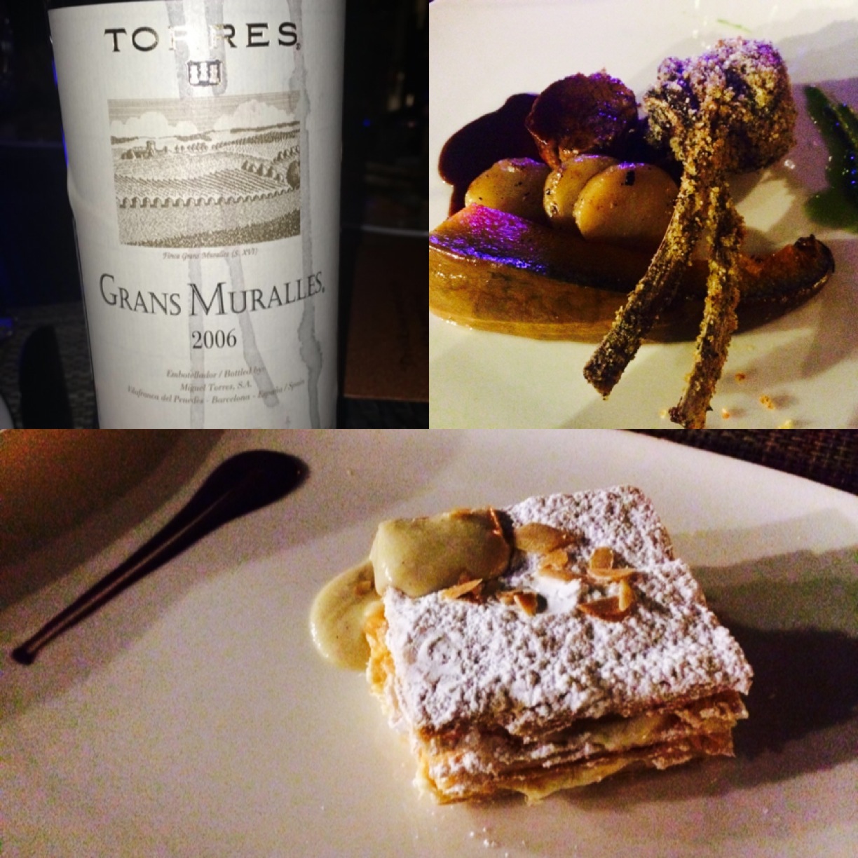 The wine of the evening was the Torres Gran Muralles 2006, a blend of Garnacha, Mazuelo (Carinena) , Monastrell and two nearly extinct grape varieties Garro & Samso, this juicy opulent wine tasting of rich black fruit, licorice, spices and cigar box was a powerhouse. It was paired with the dish of the day Duo of Lamb with roasted pumpkin and spicy wine reduction. Finally the dessert, Almond diplomatic paired with Torres Floralis Moscatel Oro, one of Mediterranean’s most characteristic dessert wines, often described as perfumed nectar. What I have seen with most wine paired dinners is that since the chefs are given the freedom to create dishes which are not on the regular menu, they are able to conjure some brilliant dishes and Chef Emiliano of Prego did just that with the lamb.