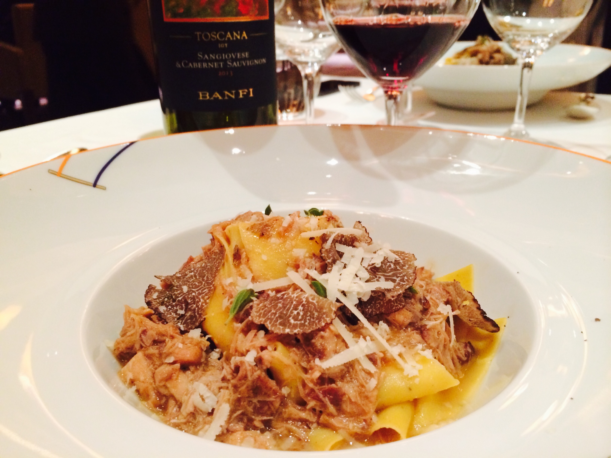 The next was Castello Banfi “Col di Sasso” 2013 IGT. A blend of Cabernet Sauvignon & Sangiovese, this was paired with the most delicious Black Pepper Pappardelle with wild hare ragout & black truffles. Col di Sasso is the Italian for “Stony Hill” as the grapes for this wine are cultivated on the rocky slopes of the southern end of Banfi estate in Montalcino. No oak is used in this and the fermentation is done in stainless steel tanks. A youthful red with a balanced acidity and a lush finish, this wine can be classified as a “Baby Super Tuscan”. A word about the pasta prepared by the new Italian Chef at Le Cirque, Diego Martinelli. It was easily the best I have eaten outside of Italy.