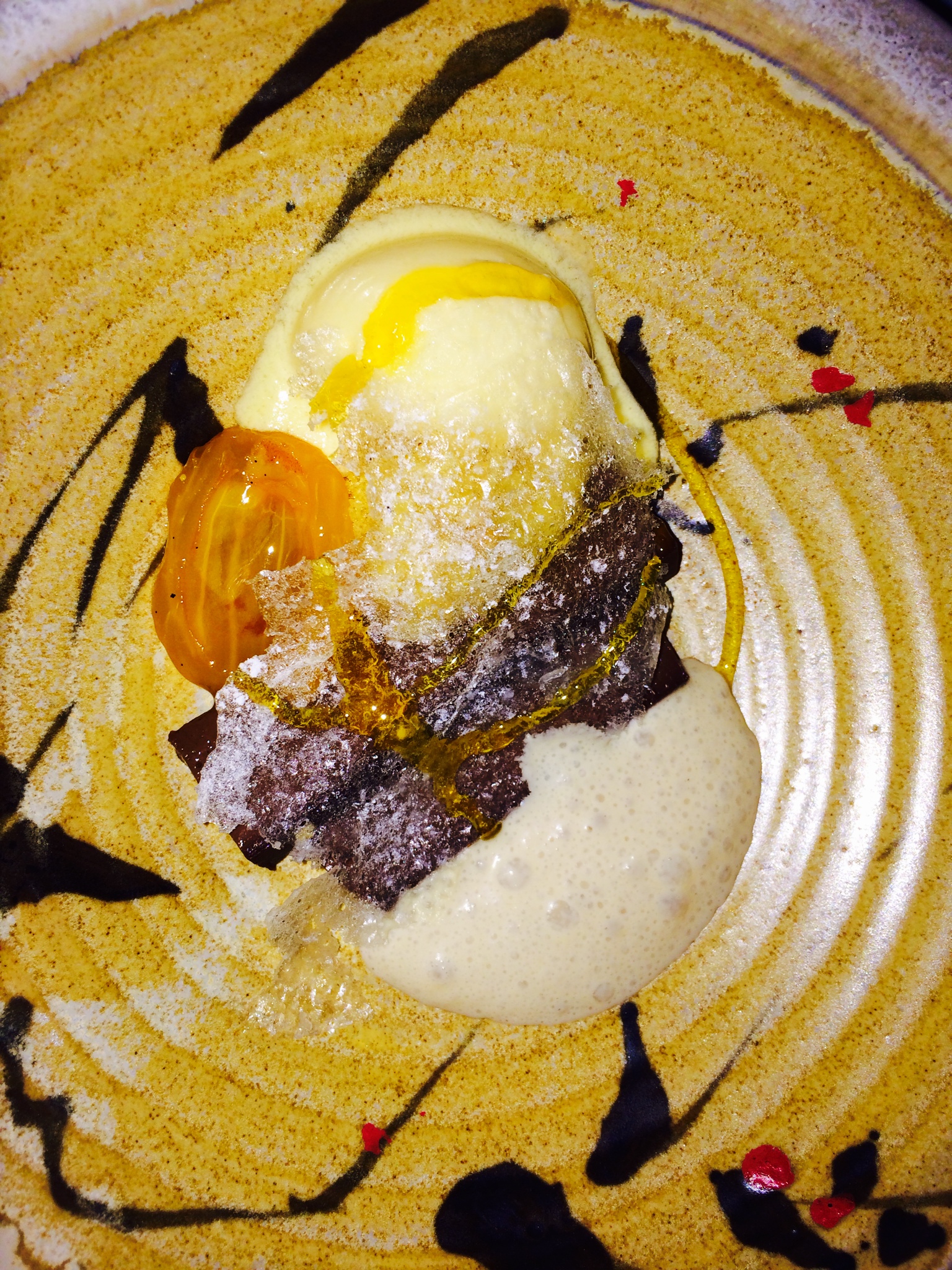 The 9th and the last course was a delicious mandarin ice-cream and chocolate ganache and coconut foam, covered with a Pootharekulu (sweet rice paper) made in Andhra Pradesh and not sourced from Japan.
