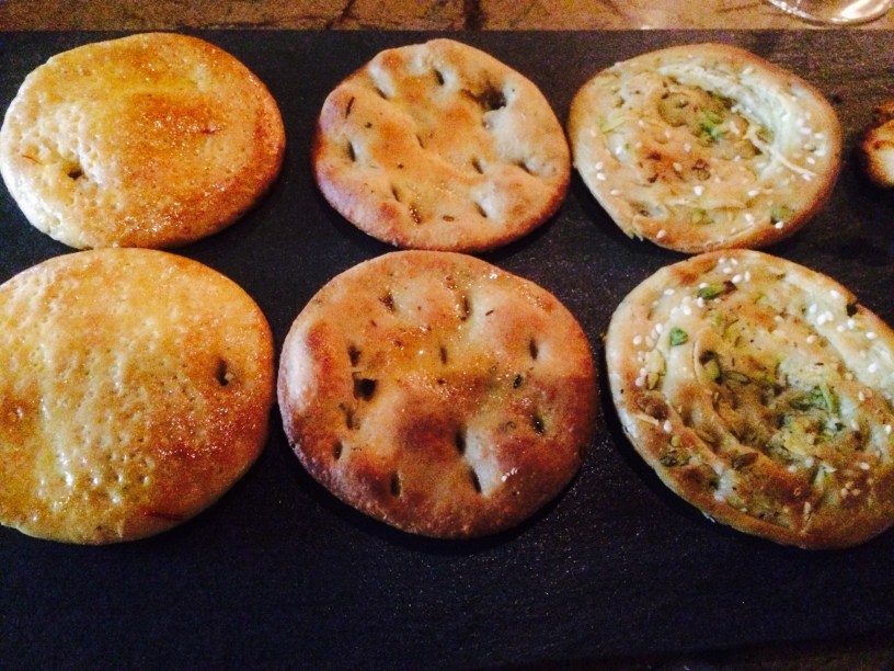 Next comes Gilafi Kulcha from Lucknow, a double layered bread with cheese, vegetable & coriander leaves paired with a medium bodied red AOC Ventoux Domaine La Pigeade “Les Sables” 2014. The wine is a blend of Grenache, Carignan & Syrah and its red berry and pepper notes match the slightly spicy kulcha perfectly.
