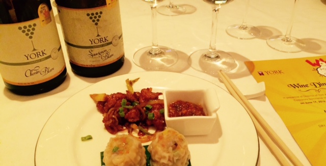The starters, Dry Chilli Chicken & Prawn Sui Mai or Crispy Spinach with Corn & Vegetable Kothe are paired with two whites, York Sauvignon Blanc and York Chenin Blanc.