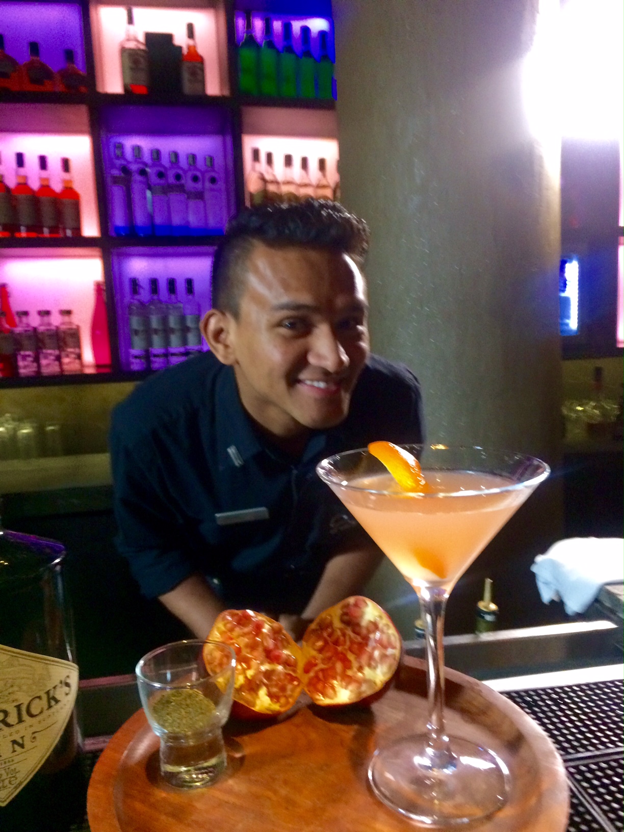 What if I told you that you can combine the two and imbibe it in a chic and trendy setting? Does Pomegranate Green Tea, a cocktail made with Hendricks’s gin, fresh pomegranate, green tea syrup and orange bitters sound interesting? Believe me it is. And delicious too.
